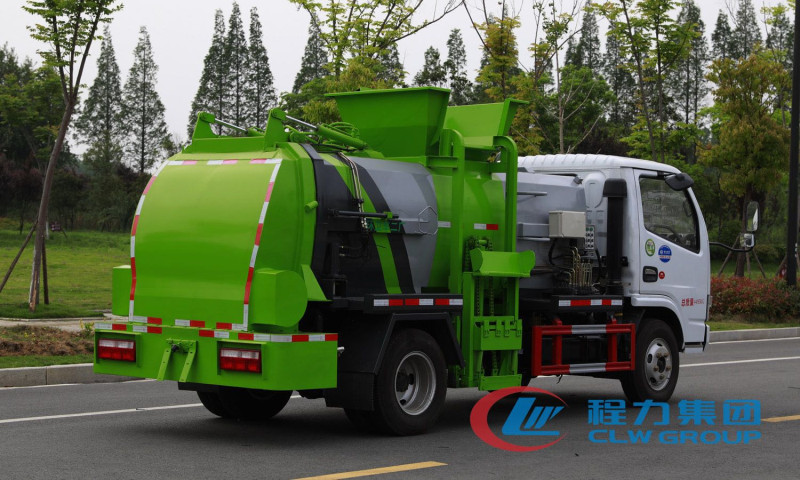 方形廂式餐廚垃圾車標配:弧形箱體,箱體材質為4~6mm,長源油泵,揚州中梅多路閥,海普瑞斯油缸,推鏟卸料(不帶舉升功能),具有干濕分離功能,后蓋液壓控制,帶耐磨腐蝕硅膠密封條,后門液壓鎖緊,拉桿式提升機,掛240L標準塑料垃圾桶,進料口蓋液開關,駕駛室內集中電控(提升機外部手動控制),后門鎖緊與后蓋開關的操作具有防誤操作功能,箱體帶清洗裝置(液壓馬達帶動高壓泵、帶水箱),部分車型清洗裝置為選裝。