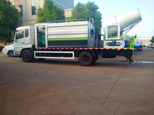 50米多功能抑塵車罐體配置:灑水罐罐體為橢圓形或方圓,材質(zhì)為武鋼產(chǎn)4mm厚熱板,罐體容積為10-15立方米(可根據(jù)用戶要求制作),可載水10-12噸,上戶噸位為6.3噸。罐體采用對(duì)接焊工藝制造,進(jìn)行氣壓檢漏試驗(yàn),配備取力器、灑水泵及綠化炮等裝置,帶消防接口,可通過消防栓進(jìn)水,并帶有工作平臺(tái),具備有前沖、后灑、側(cè)噴等灑水功能,同時(shí)綠化炮的出水形態(tài)可根據(jù)需要調(diào)節(jié)成柱狀、大雨、小雨及霧狀等,可全方位旋轉(zhuǎn),其射程可達(dá)28米以上。