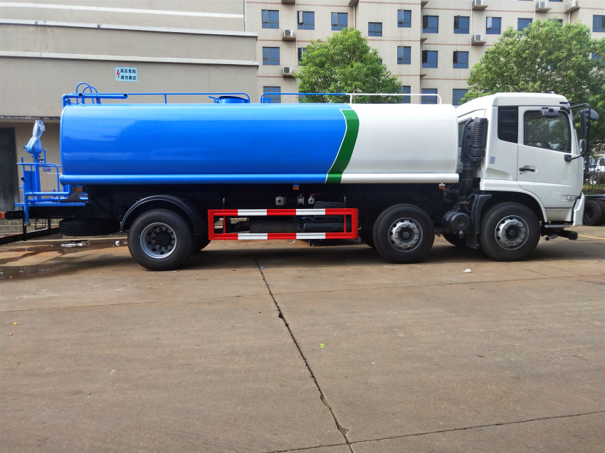 :罐體容積為12立方灑水車,罐體鋼板為4mm碳鋼Q235材質,罐內隔板具有防波作用,以減輕汽車行駛時罐體液體沖擊,罐體及整車外形尺寸按照公告。帶大功率專用灑水泵,泵可自吸自排,整車前沖、后灑、側噴、帶65消防接口,后平臺帶綠化灑水車,灑水炮,灑水炮可全方位旋轉,可連續調成直沖狀、大雨、小雨、毛毛雨;前封頭帶水位計,后平臺主管路帶1寸澆花接口,后爬梯。平臺后部帶小安全告知牌:“隨時停車,注意安全”,帶兩根水管及陰陽端。罐體顏色:上白/下藍,銀灰/銀藍,罐體兩側噴“灑水車、綠化灑水車”字樣,貼反光標示。灑水車可加裝前沖后灑氣動閥駕駛室控制、可加裝霧炮機組發電機組噴霧降塵裝置、車頭可加裝推雪雪鏟、雪滾裝置街道、公路除雪等。