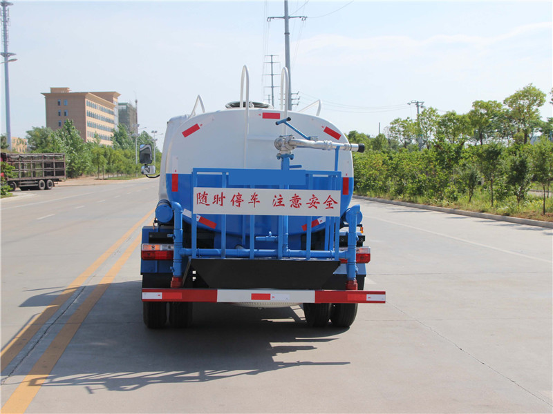 灑水車廠家標配:前沖后灑,帶側噴,罐體后帶工作平臺,平臺上安裝綠化灑水炮和農藥噴灑專用炮,灑水炮和農藥炮均可***旋轉,可連續調成直沖狀、霧狀、大雨、小雨、毛毛雨。噴藥炮霧化效果好,可遠程噴霧,射程達20米。隨車裝配大功率柴油機、三相交流同步發電機、三相異步電動機、三缸活塞泵,并安裝風機風炮,為農藥噴灑提供專一動力來源和專用設備。并安裝全國質量評比名的杭州威龍專用灑水泵,控制灑水系統。灑水泵可抽水排水,安裝濾網,帶消防接口,可通過消防栓進水,帶自流閥,隨車選裝20米噴藥綠化卷盤。
