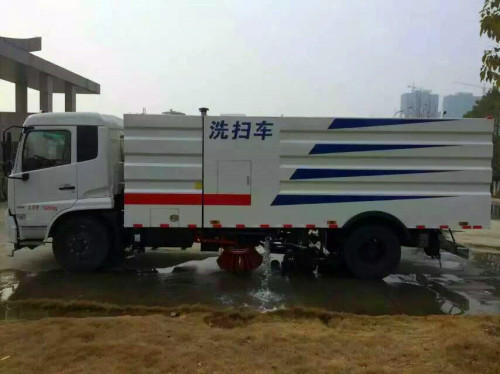 掃路車水箱容積小,采用的是低壓水泵,掃路時水只作用于噴霧降塵,有些頑固垃圾,如粘 在地面的干泥土,掃刷是掃不走也吸不起來的! 洗掃車水箱容積大,采用的是高壓水泵,掃路時先用水對路面進行高壓沖洗,再頑固的垃圾 都能直接沖起來,再吸掃收集垃圾,以達到更好的清掃效果, 更簡單的說就是,洗掃車比掃路車多加裝一個高壓水泵,加大了水箱容積,加大了副發動機馬力