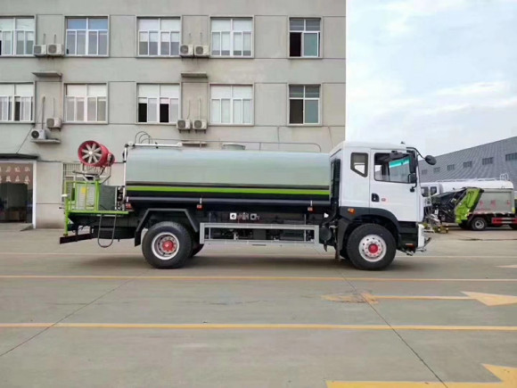 灑水車吸程≧7米,灑水寬度≧14-16米,射程≧25-40米,引水時(shí)間<5min,流量60m3/h。前沖(噴)、后灑、帶側(cè)噴(花灑)、帶后工作平臺(tái)、平臺(tái)上安裝綠化灑水高炮(炮噴射形狀可調(diào)節(jié):直沖、大雨、中雨、毛毛雨、霧狀、可連續(xù)調(diào)節(jié),360°旋轉(zhuǎn)),配消防接口,自流閥,濾網(wǎng),帶自吸自排功能。配備大功率專用灑水泵,泵可自吸自排,安裝過濾網(wǎng),帶消防接口,可通過消防栓進(jìn)水,帶自流閥,此車尾部加裝大功率農(nóng)藥噴灑炮,