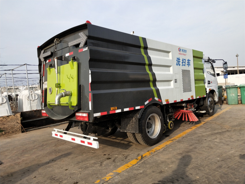 洗掃車具有路面清洗、路面清掃 路緣和路緣石立面洗刷、低壓沖洗、噴霧除塵等多功能。有“全洗掃”、 “左洗掃”、 “右洗掃”、 “全掃”、 多種作業(yè)模式可選擇。選擇“全洗掃”模式清洗廣場和路面,清洗效率高效果好,洗凈率達95%以上。選擇“左洗掃”或“右洗掃”模式清洗路面和路緣 。需要進行路面清掃或路面保潔作業(yè)時,可選擇掃路模式。需要噴霧除塵時,可開啟噴霧裝置,進行噴霧除塵作業(yè)。可以像灑水車一樣對路面進行低壓沖洗作業(yè)。
