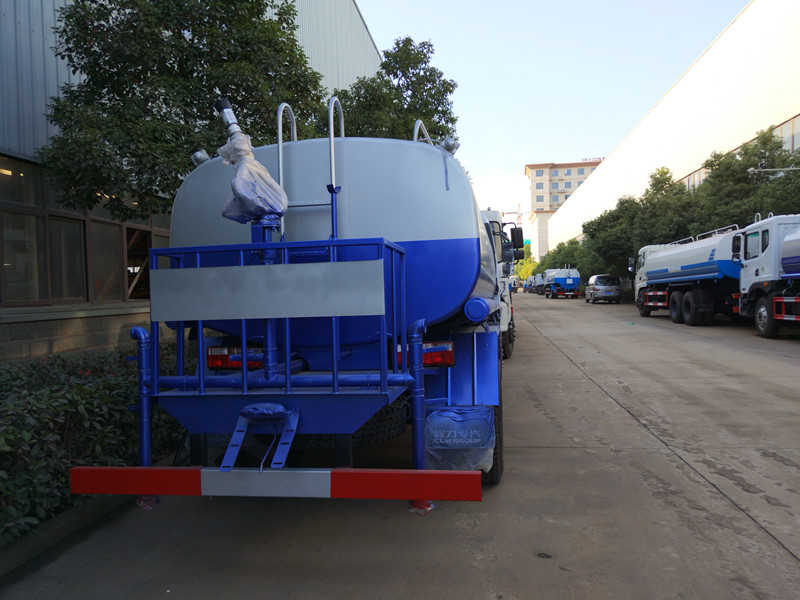 灑水車介紹及性能特點:1.功能介紹:前沖(噴)后灑、帶側噴、后置工作平臺、平臺上安裝綠化灑水高壓炮(炮形狀可調:直沖狀、大雨、中雨、毛毛雨,可連續調節,理射程可達28米) ,配備的“程力威”牌大功率灑水泵,帶消防接頭,帶自流閥,帶自能,帶濾網。2.產品概述:該車型為東風公國五 排放。灑水車部分由罐體、水泵、取力器、傳動軸、球閥、噴灑裝置等部件組成。采用定型產品,具有性能、工作可靠、通用適配等特點。灑水車罐體結構為橢圓形或方圓形,采用武鋼優質碳鋼制作,的對焊接工藝,罐設防蕩防波隔板,下端有通孔,罐體成型后高壓氣體試漏檢測,使罐體具有強度高、重心穩、車輛運載平穩等特點。