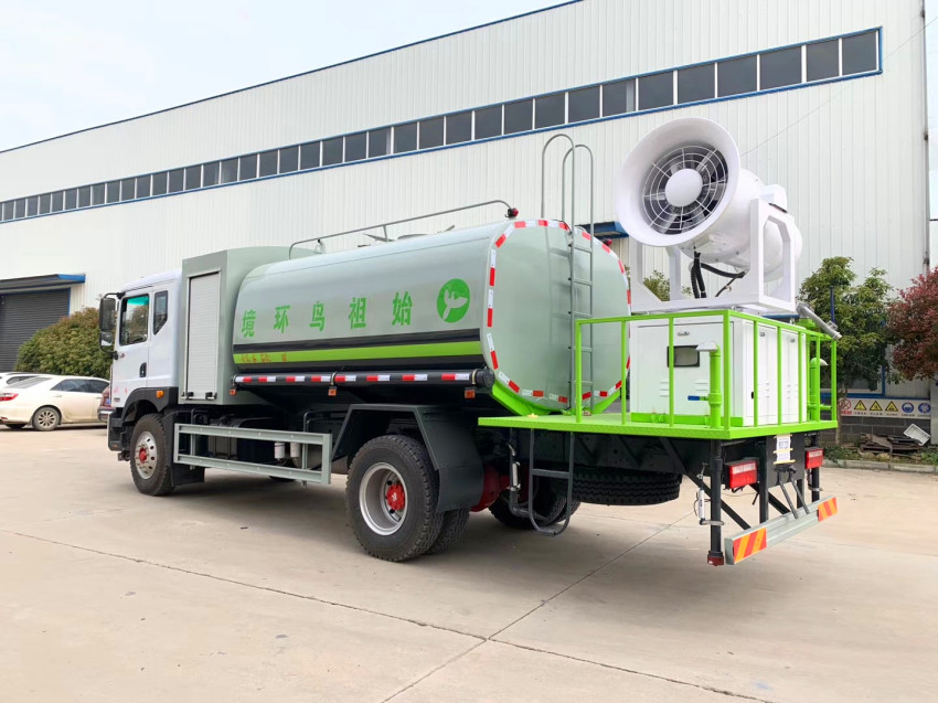 ◆  前沖(噴)后灑,帶側噴,后置工作臺,平臺上安裝綠化灑水高壓炮(炮噴射性狀可調成直沖狀、大雨、中雨、毛毛雨、炮可360°旋轉,射程>35米)。