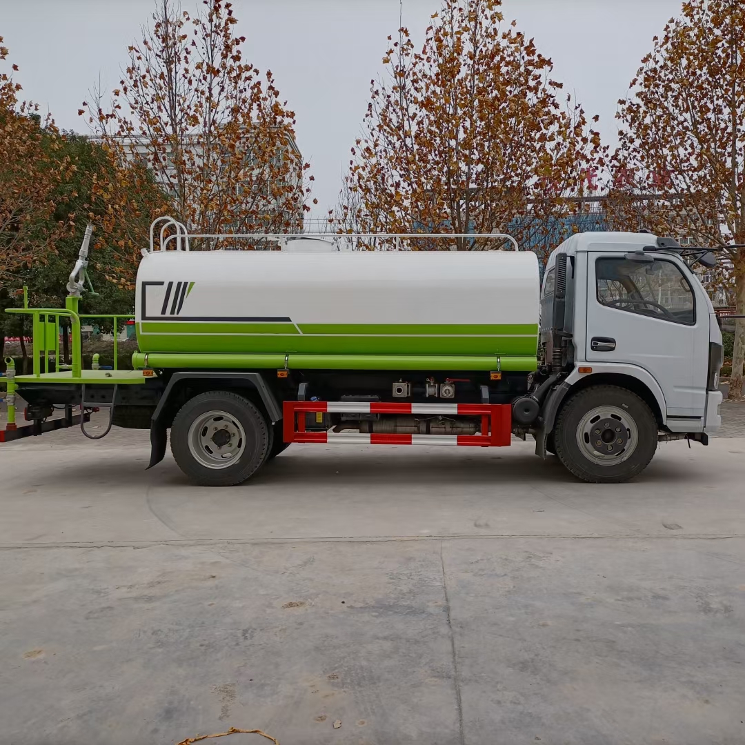 4.灑水車前噴頭位置較低,靠近地面,噴灑壓力較大,可用于沖洗路面;后噴頭位置較高(灑水車后噴頭一般左右各安裝一個),灑水面較寬,可用于公路施工灑水,使用后噴頭時,應將前噴管關閉;使用可調噴頭灑水時,灑水寬度可根據需要調整。灑水寬度越寬,中間重疊量越少,灑水密度越均勻。