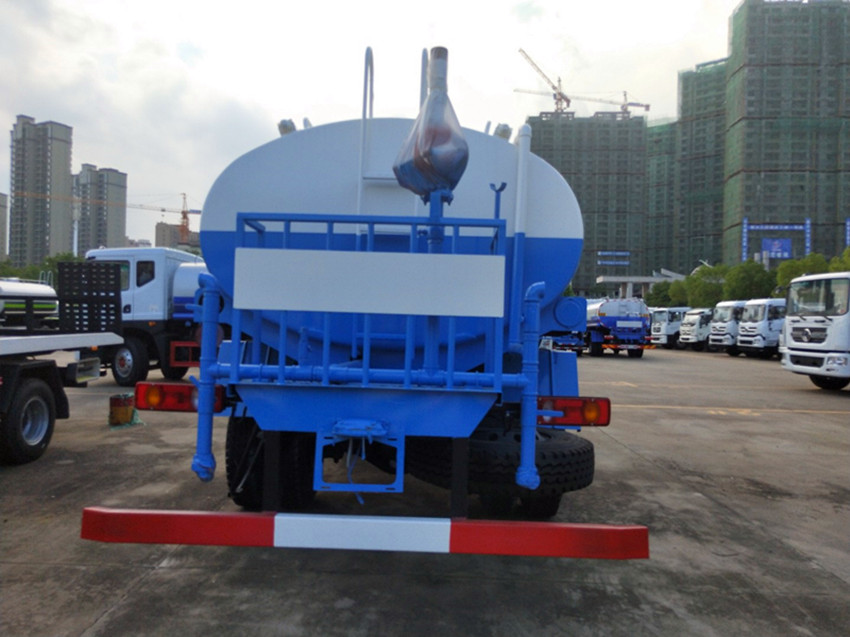 罐體實際容積為:5-20立方米.罐體采用武漢鋼鐵公司Q235優質碳鋼板材,罐體內設多道防波隔板,采用高壓氣體試漏檢測,使罐體具有強度高,重心穩.車輛運載安全平穩.罐體外表涂防銹漆及裝飾漆.罐體及各杠貼紅白色視覺反光條,罐體兩側噴“綠化灑水車”字樣(可按您的要求噴繪字樣),罐體顏色出廠為上白下綠或上白下藍(可按您的要求噴繪顏色).