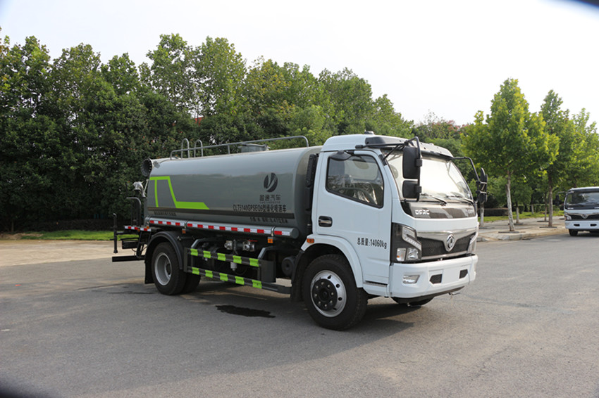 4、國六東風多利卡5噸灑水車的維護與安全:灑水車底盤和發動機部分的使用和保養,按載重灑水車使用說明書執行。水泵的使用和保養,嚴格按其使用維護說明書執行。水源不能有過多雜質,過濾器網應該經常拆洗。冬季來臨前,灑水車應將水泵和水管內的水放空,以防凍裂。灑水車吸水時進水管系統必須保持一定的真空度,才能將水吸入箱內,故進水管系統務必密封可靠.每次工作完畢后,均應將各閥門手柄扳至關閉狀態。各閥門一般不應處于半開狀態,以免影響密封性能。每次工作完畢后,均應及時蓋上進、出口外端的堵蓋。水裝載量不宜超過額定裝載質量。