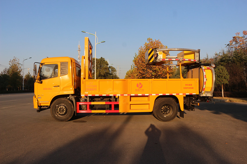 該車專用裝置為:車載式緩撞裝置,主要用于移動施工、臨時性封閉車道或交通事故處理及搶險現場,