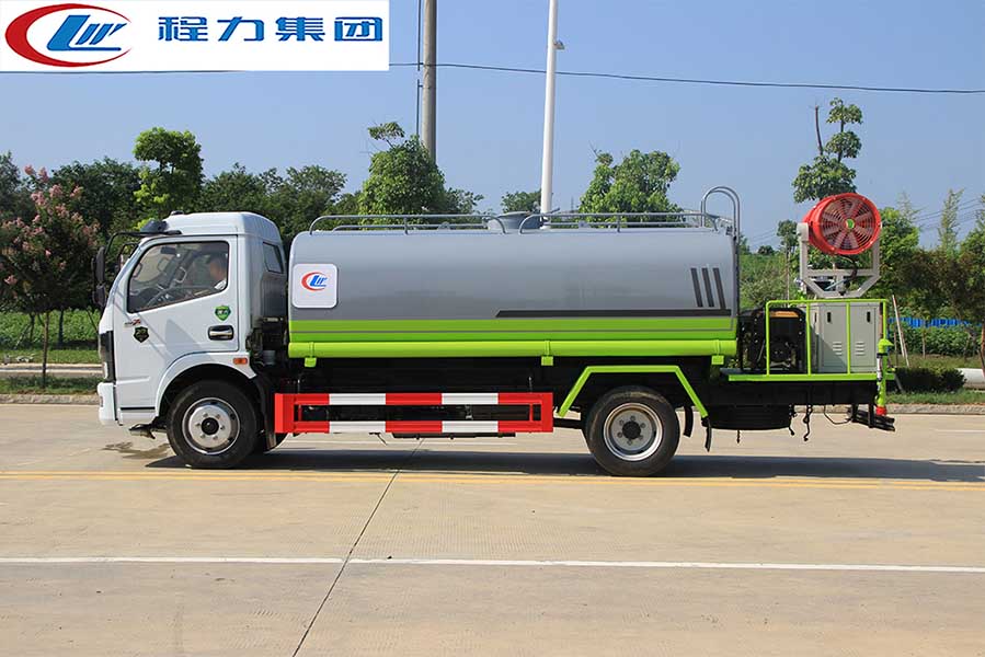 9方東風多功能抑塵車配置價格30米霧炮車圓罐灑水車廠家圖片整車說明: 9方東風多功能抑塵車配置價格30米霧炮車圓罐灑水車廠家圖片,采用東風福瑞卡底盤,3800mm軸距,國六新款駕駛室,云內國六150馬力,萬里揚6檔變速箱,2.2T前橋,4.5T后橋,7.50R16的鋼絲胎,帶原廠空調、電動窗、中控鎖、ABS,24V雙電瓶,新法規底盤。圓罐容積可做到9方多,罐體采用優質碳鋼制作。前沖,后灑,側噴,右側花灑,罐體后帶工作平臺,平臺上安裝綠化灑水炮,灑水炮可全方位旋轉,可連續調成直沖狀、大雨、小雨、毛毛雨,帶安全護欄,配備大功率專用灑水泵,泵可自吸自排,安裝過濾網,帶消防栓接口,可通過消防栓進水,帶自流口。