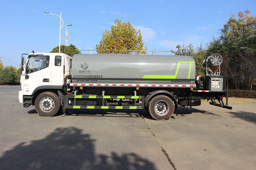 福田灑水車性能簡介:吸程≧7米,灑水寬度≧14-16米,射程≧25-40米,引水時間<5min,流量60m3/h。前沖(噴)、后灑、帶側噴(花灑)、帶后工作平臺、平臺上安裝綠化灑水高炮(炮噴射形狀可調節:直沖、大雨、中雨、毛毛雨、霧狀、可連續調節,360°旋轉),配消防接口,自流閥,濾網,帶自吸自排功能。安裝30-80米霧炮,霧炮可以遙控操作,可以手動操作,按霧炮大小配多大功率發電機