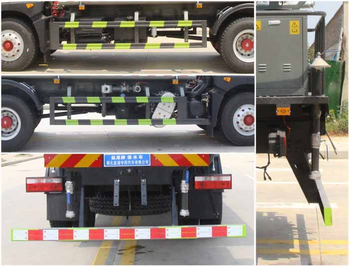 備注 | 該車主要用于城鄉(xiāng)園林綠化,路面噴灑,除塵和降溫;主要裝置為水罐及噴灑裝置;隨底盤選裝駕駛室,隨底盤選裝燃油箱,電瓶,尿素罐,儲(chǔ)氣筒左右安裝位置;罐體總?cè)萘?11.45立方米;罐體有效容積:10.9立方米;罐體外形尺寸(長(zhǎng)×長(zhǎng)軸×短軸)(mm):5200×2300×1400,4400×2350×1600;側(cè)、后防護(hù)材料均為:Q235碳鋼,連接方式均為:螺栓連接,后部防護(hù)截面尺寸(mm):120×50,后部防護(hù)離地高度(mm):450.ABS系統(tǒng)生產(chǎn)廠家,型號(hào):焦作博瑞克控制技術(shù)有限公司,J ABS;襄陽東風(fēng)隆誠(chéng)機(jī)械有限責(zé)任公司,ABS/ASR-24V-4S/4M.選裝噴灑裝置樣式,選裝弧形噴灑裝置,選裝箭頭燈裝置,選裝自動(dòng)球閥安裝位置,選裝水炮支架位置,選裝無高位花灑裝置.選裝罐體頂部方形罐口,選裝車輛前部鴨嘴裝置,選裝電子炮樣式,前伸500mm時(shí),車輛長(zhǎng)度為8950,8200mm.選裝后部自流口裝置,后部作業(yè)燈僅在作業(yè)時(shí)開啟,車輛行駛過程中不可開啟. | ||