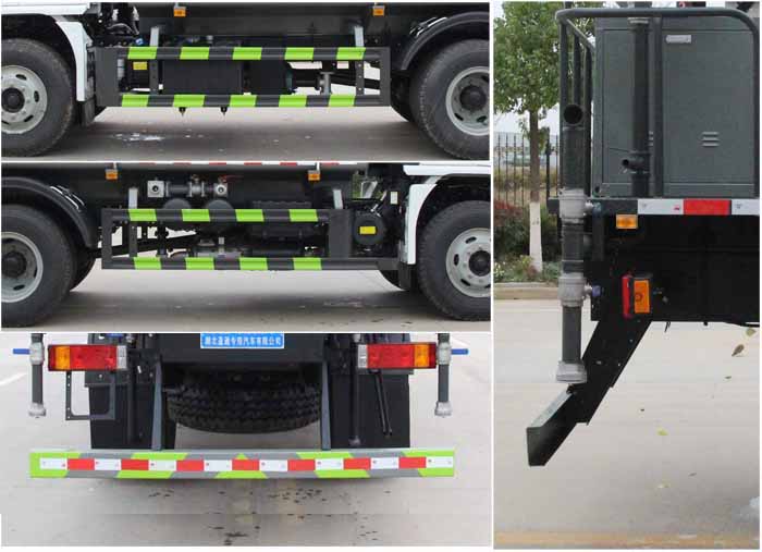 該車主要用于城鄉園林綠化噴灑作業;主要裝置為罐體及噴灑裝置.罐體總容量:11.2立方米,罐體有效容積:10.7立方米;罐體外形尺寸(長×長軸×短軸)(mm):4000×2300×1540,4200×2300×1450.ABS系統生產廠家及型號分別為:西安正昌電子股份有限公司(型號:ZQFB-V).側、后防護材料均為:Q235碳鋼,連接方式均為:螺栓連接,后部防護截面尺寸(mm):120×50,后部防護離地高度(mm):470.僅采用底盤4000mm軸距改裝.選裝前部不帶電子霧炮,選裝電子霧炮樣式.當前部不帶電子霧炮時,車輛長度7850mm,7600mm,無前伸;當前部選裝電子霧炮時,車輛長度8350mm,8100mm,前伸500mm.選裝后部大工作平臺.后軸僅采用鋼板彈簧懸架.選裝噴灑裝置樣式,選裝后部箭頭燈裝置,選裝后部弧形噴灑裝置樣式,選裝自動球閥安裝位置,后部作業燈僅在作業時開啟,車輛行駛過程中不可開啟.隨底盤選裝油箱電瓶安裝位置.隨底盤選裝駕駛室.