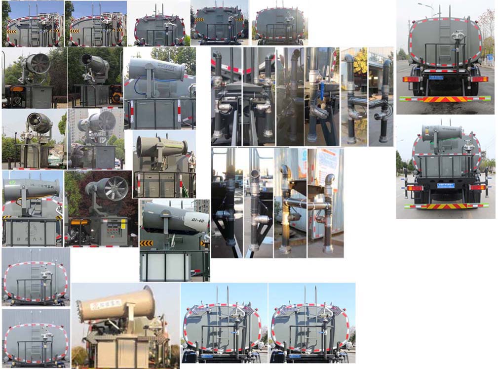 我公司產品標配前噴(鴨嘴)、后沖、后灑、側噴、后置式工作 平臺,平臺上配置綠化水炮(可 360°旋轉,既可以調成柱狀,也可 以調成霧狀,更可以調成直沖狀、大雨、中雨、小雨、毛毛雨),配 備優質大功率專用灑水泵(可自吸自排,可從河里或池塘抽水到罐體), 取力器,雜物過濾網,消防接口,自流球閥系統、取力器、球閥、濾網 均為國家標準產品,主管道加粗,法蘭墊、法蘭盤加厚,大通徑球閥。 整體具備性能優良安全可靠、效率高、流量大、維修方便等特點