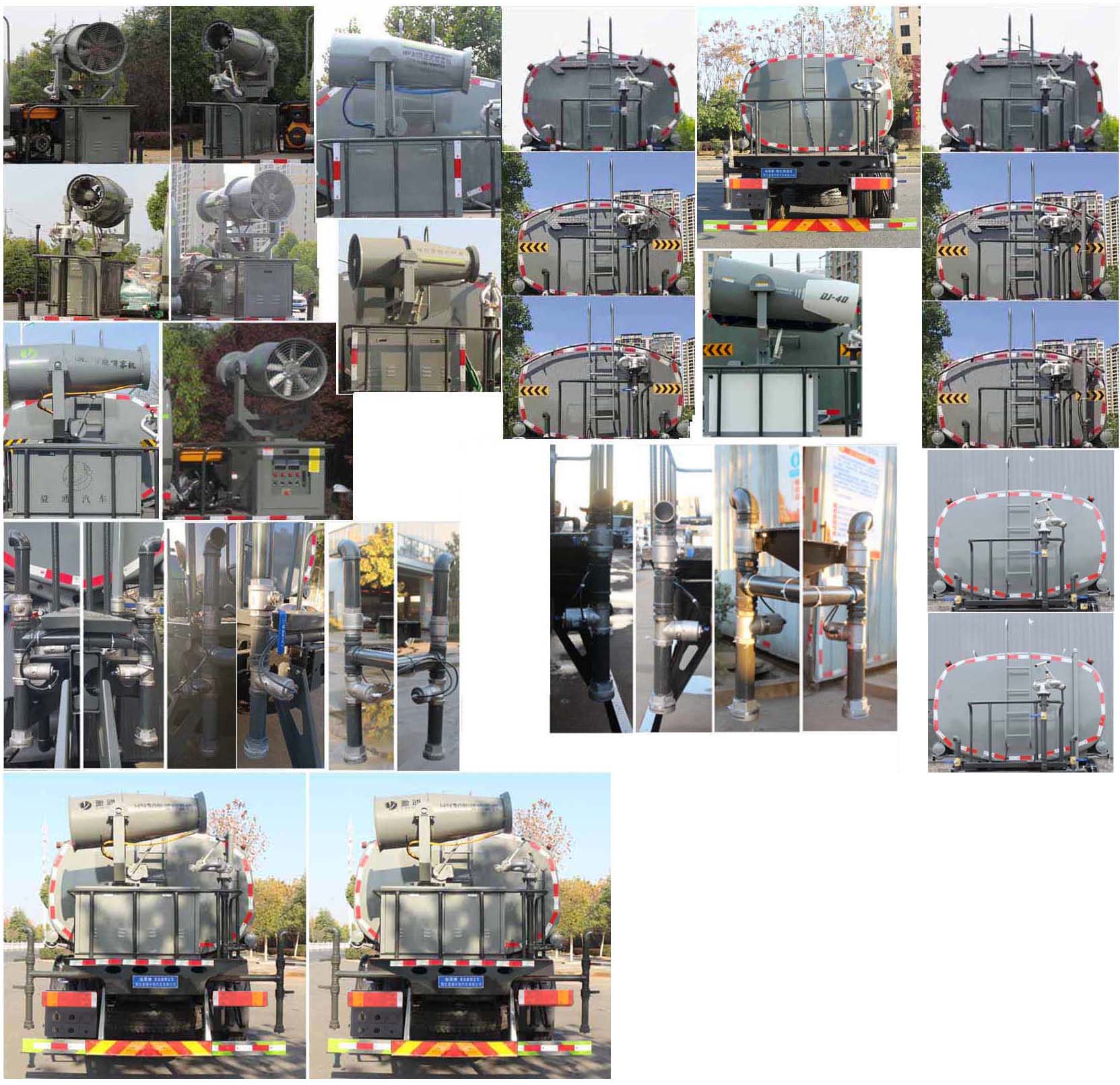 該車主要用于城鄉(xiāng)園林綠化噴灑作業(yè).主要裝置為罐體及噴灑裝置.罐體總?cè)萘?20.45立方米;罐體有效容積:19.47立方米;罐體外形尺寸(長(zhǎng)×長(zhǎng)軸×短軸)(mm):7300×2450×1650.僅采用軸距(mm):1850+3200+1350改裝.側(cè)、后防護(hù)材料均為:Q235碳鋼,連接方式均為:螺栓連接,后部防護(hù)截面尺寸(mm):120×50,后部防護(hù)離地高度(mm):490.ABS生產(chǎn)廠家:東科克諾爾商用車制動(dòng)系統(tǒng)(十堰)有限公司,浙江萬(wàn)安科技股份有限公司,型號(hào):3631010-C2000,VIE ABS-Ⅱ.選裝前部不帶電子霧炮.選裝電子炮裝置樣式.當(dāng)前部選裝電子炮裝置時(shí),前伸為500mm,整車長(zhǎng)度為11230mm,11750mm.隨底盤選裝駕駛室,選裝噴灑裝置樣式,選裝后部箭頭燈裝置,選裝后部大工作平臺(tái),選裝罐體頂部高位花灑裝置,選裝自動(dòng)球閥安裝位置,后部作業(yè)燈僅在作業(yè)時(shí)開啟,車輛行駛過程中不可開啟.
