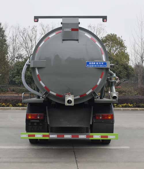 隨底盤選裝底盤布置。該車主要用于下水道排污及疏通,主要裝置為罐體和吸污裝置;隨底盤選裝駕駛室;罐體總容量:7.4立方米;罐體有效容積:7.05立方米;罐體外形尺寸(總長×直徑)(mm):4800×1550,4700×1600;ABS型號/廠家:ABS型號及生產廠家為:3631010-C2000/東科克諾爾商用車制動系統(十堰)有限公司,J ABS/焦作博瑞克控制技術有限公司;卸料方式為舉升后卸式;側、后防護材料均為:Q235碳鋼,側防護采用螺栓連接,后防護采用焊接連接,后部防護截面尺寸(mm):120×50,后部防護離地高度(mm):450.選裝左邊樣式。