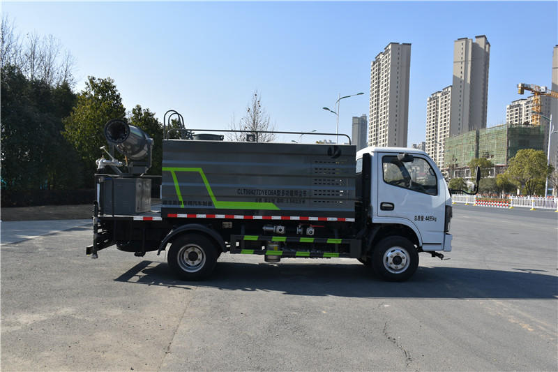 東風5方霧炮灑水車 整車型號 CLT5042TDYEQ6 型多功能抑塵車 2 發動機型號 D20TCIF1 3 發動機馬力/功率 云內 126 馬力/93KW 4 發動機排量 1999ML 5 變速箱 萬里揚 5 檔 6 輪胎規格 7.00 鋼絲胎 7 軸距 3308 8 總質量 4495KG 9 整備質量 3750KG 10 額定載質量 615KG 11 整車尺寸(長×寬×高) 5.998*1.99*2.8 12 罐體容積 5 方 13 燃料種類 柴油 14 排放標準 國六 15 水泵型號 40/50 16 罐體材質 Q235 碳鋼