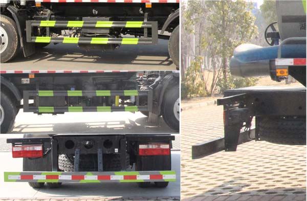 該車主要專用裝置:罐體及吸糞裝置,主要用于抽排運污水、糞便、泥漿等液態污物;罐體總容量9.98立方米,罐體有效容積9.5立方米,罐體外形尺寸(長×長軸×短軸)(mm):4200×2100×1500;ABS型號/廠家:ABS型號:ABS/ASR-24V-4S/4M,廠家:襄陽東風隆誠機械有限責任公司;側、后防護材料均為:Q235碳鋼,連接方式均為螺栓連接,后部防護截面尺寸(mm):120×50,后部防護離地高度(mm):460;僅采用底盤3800mm軸距改裝.隨底盤選裝駕駛室,選裝電瓶,油箱位置.隨底盤選裝限速裝置,車速89km/h.