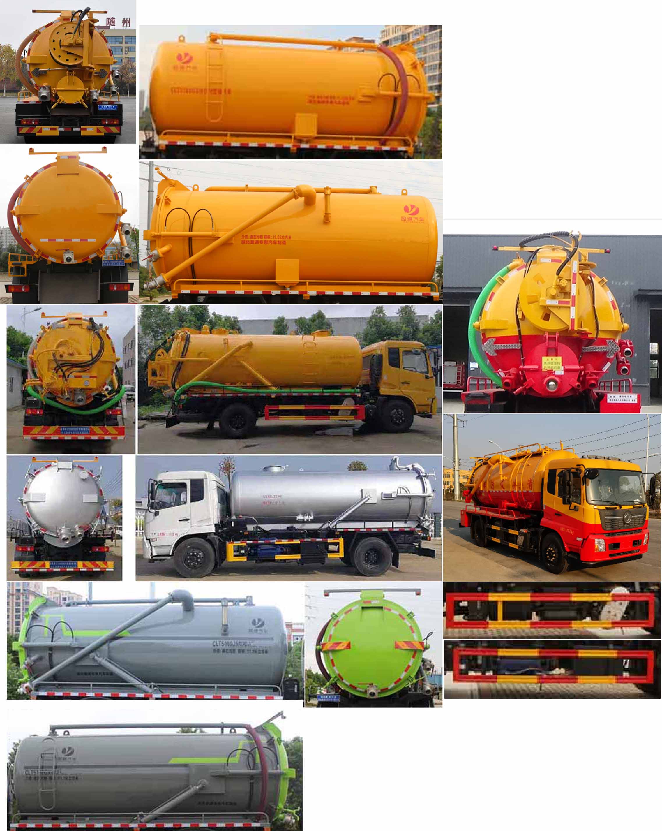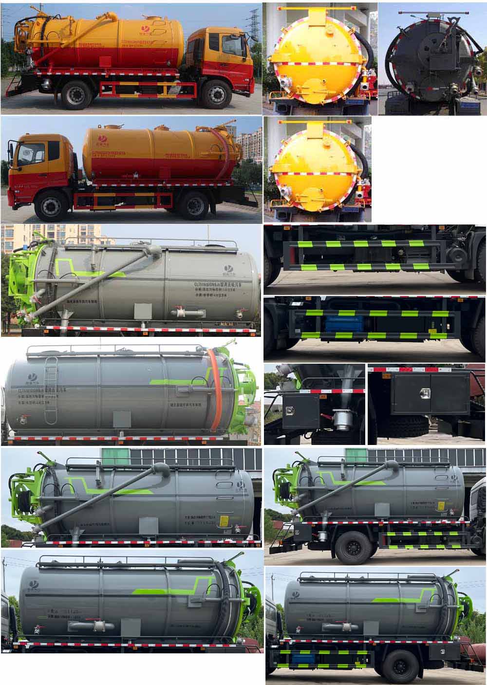 ABS型號/生產廠家:3631010-C2000/東科克諾爾商用車制動系統(十堰)有限公司,ABS 8/東科克諾爾商用車制動系統(十堰)有限公司, 4460046450/威伯科汽車控制系統(中國)有限公司,J ABS/焦作博瑞克控制技術有限公司;隨底盤選裝駕駛室,選裝后部樣式,選裝罐體左右樣式;側、后防護材料均為:Q235碳鋼,連接方式均為:螺栓連接,后部防護截面尺寸(mm):200×50,后部防護離地高度(mm):450;罐體尺寸為(直段長×直徑)(mm):5000×1950(前部1800mm為清水罐,后部3200mm為污水罐);污水罐總容量:8.14立方米,污水罐有效容積:7.75立方米,介質:液態污物,清水罐總容量:5.36立方米,清水罐有效容積:5.3立方米,介質:水;專用功能及裝置:該車主要用于下水道系統的清理和疏通工作;主要裝置為貯污罐及清洗吸污裝置;其他說明:兩罐獨立,且不能同時滿載,清洗功能時用清水罐,吸污功能時用污水罐;選裝限速裝置,限速89.選裝油箱,電瓶安裝位置。選裝罐體頂部左右護欄樣式。選裝工具箱位置。