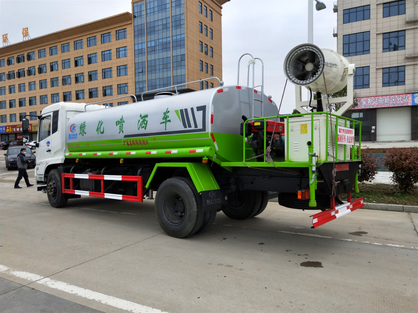 陜西咸陽秦總電話聯系程力集團,要求購買一臺霧炮車,罐體容積12方,用于廠區降塵,因為公司有預算,需要買一臺性價比高的霧炮車,程力集團工作人員給秦總介紹了東風專底霧炮車,這款車型采用東風公司原裝底盤,玉柴160馬力國五發動機,帶有前沖后灑側噴等灑水車裝置,后平臺上安裝協霧炮,射程可達30米,對于片區降塵有顯著效果,對于工作環境灰塵大的地方可以明顯改善,所以霧炮車越來越受廣大用戶的喜愛。