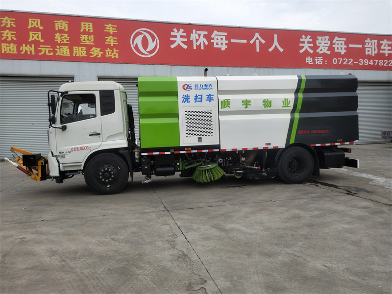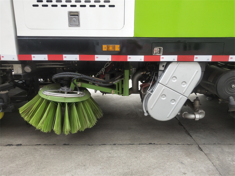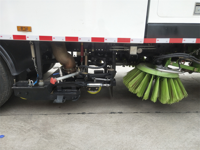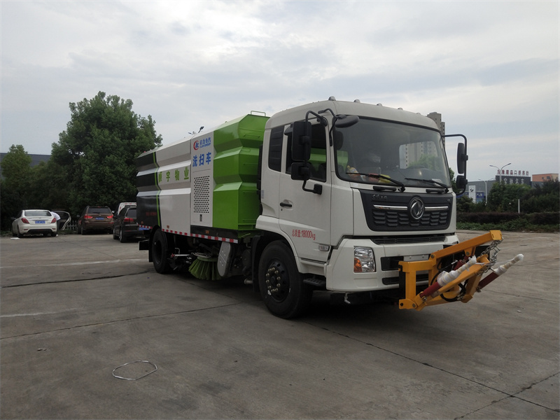 洗掃車采用中置兩刷盤,中置寬吸盤,配上具有防撞避障功能的V型高壓沖水架,組成一條大于3.5米的沖洗清掃帶。采用康明斯EQ6BT5.9-118型副發動機現階段亦有采用電動作為動力的驅動裝置橫置在車架中部,具有氣動離合裝置控制的抽吸風機布置在動力倉的左側。采用不銹鋼材料加工而成的水箱與垃圾箱均為采用方形瓦棱結構。水箱分為兩部位,一部分為前置獨立水箱,裝配在動力倉的前部;另一部分為設置在垃圾箱前部的水箱,可隨垃圾箱與動力倉罩同時升降。具有舉升功能的垃圾箱內裝配有高壓沖洗噴頭,使得卸料更為輕松、干凈徹底。能夠隨垃圾箱體舉升的動力倉罩可使動力系統的維修保養極為便利。采用歐美地區的名優配套部件,使得整車性能更為優良,工作更為可靠。