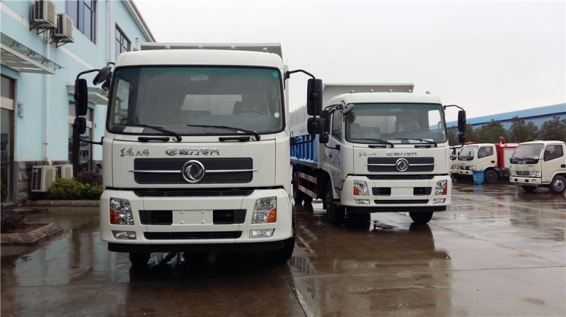 卸料結(jié)構(gòu):東風(fēng)天錦對(duì)接式垃圾車系用箱卸料,由兩只液壓油缸直接舉升車廂進(jìn)行卸料,箱底與地面夾角不小于45度,以實(shí)現(xiàn)垃圾依靠自重能自行卸下的專用自卸運(yùn)輸車。
