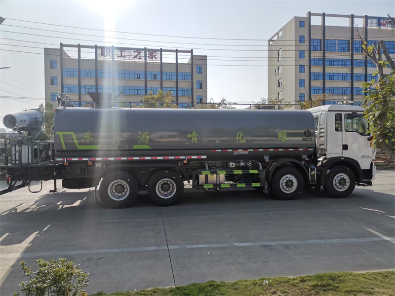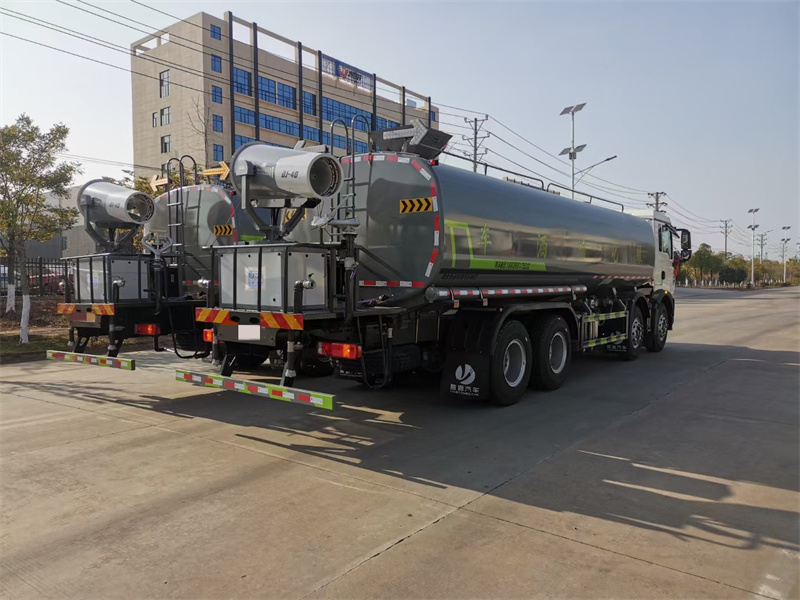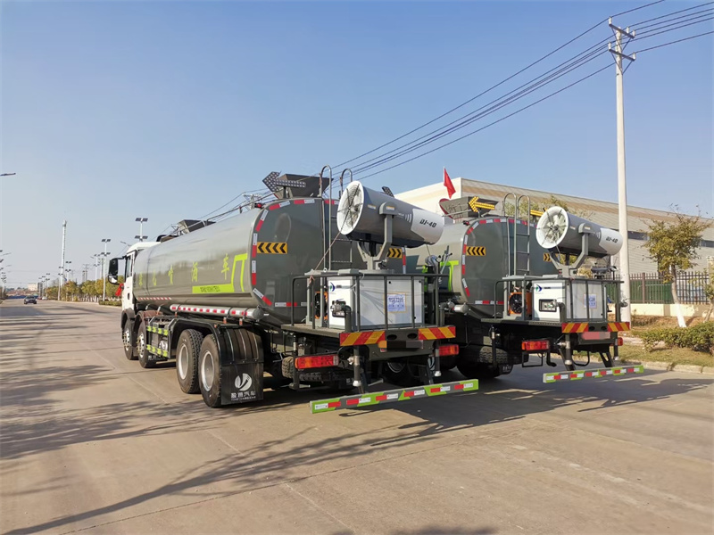 縱昂牌CLT5311TDYZZ6型多功能抑塵車標配前噴(鴨嘴 ) 、后 對沖、后灑、側噴、后置式工作平臺,平臺上配置綠化水炮(可 360°旋 轉, 既可以調成柱狀,也可以調成霧狀),配備優質大功率專用灑水泵(可自吸 自 排,可從河里或池塘抽水到罐體),取力器,雜物過濾網,消防接口,自流球閥 系統、取力器、球閥、濾網均為國家標準產品,主管道加粗,法蘭墊、法蘭盤 加厚,大通徑球閥。整體具備性能優良安全可靠、效率高、流量大、維修方便 等特點。