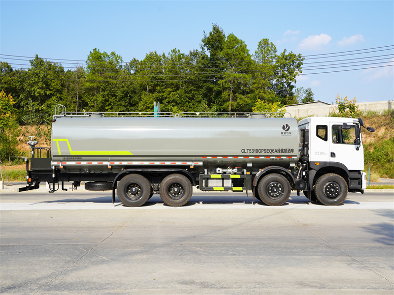 東風28-30噸灑水車該車主要用于城鄉園林綠化噴灑;主要裝置為罐體及噴灑裝置:罐體總容量:20.1立方米;罐體有效容積:19.14立方米;罐體外形尺寸(長×長軸×短軸)(mm):7300×2450×1650;側、后防護材料均為:Q235碳鋼,連接方式均為:螺栓連接,后部防護截面尺寸(mm):120×50,后部防護離地高度(mm):490;ABS的型號及生產廠家:3631010-C2000/東科克諾爾商用車制動系統(十堰)有限公司,J ABS/焦作博瑞克控制技術有限公司.隨底盤選裝駕駛室,選裝噴霧裝置樣式,選裝箭頭指示燈裝置,選裝自動球閥安裝位置,選裝水炮支架位置,選裝擋泥板樣式,采用軸距(mm):1850+3200+1350改裝.隨底盤選裝空濾尿素罐/電瓶框位置布局,選裝不帶高位花灑裝置.選裝罐體頂部高位花灑裝置,選裝罐體頂部方形罐口及罐口位置,選裝工具箱,選裝箭頭燈裝置,選裝車輛前部鴨嘴裝置,選裝尾部自流口裝置,選裝電子炮裝置樣式,安裝電子炮時整車長度為11150mm,11550mm,前伸為500mm.后部作業燈僅在作業時開啟,車輛行駛過程中不可開啟.