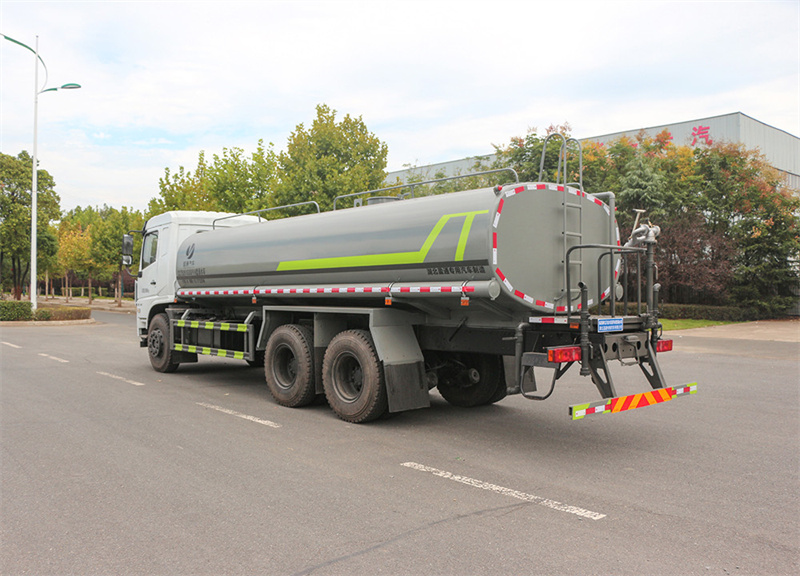 東風20噸灑水車標配前噴(鴨嘴)、后 對沖、后灑、側噴、后置式工作平臺,平臺上配置綠化水炮(可 360°旋轉,既 可以調成柱狀,也可以調成霧狀),配備優質大功率專用灑水泵(可自吸自排, 可從河里或池塘抽水到罐體),取力器,雜物過濾網,消防接口,自流球閥系統、 取力器、球閥、濾網均為國家標準產品,主管道加粗,法蘭墊、法蘭盤加厚, 大通徑球閥。整體具備性能優良安全可靠、效率高、流量大、維修方便等特點