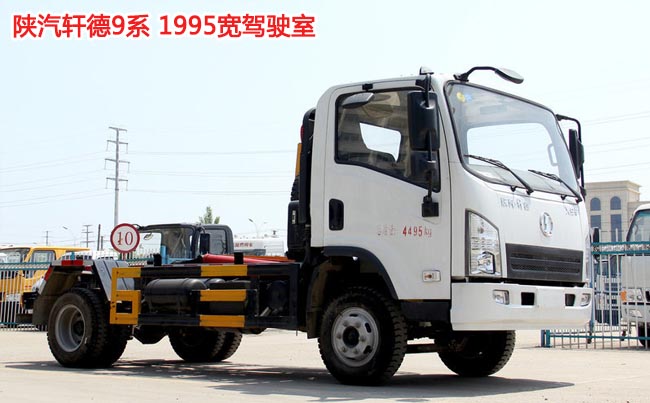 陜汽軒德9系勾臂式垃圾車,陜汽軒德9系寬體輕卡底盤,陜汽軒德1995駕駛室,無死角后視鏡,濰柴115馬力發動機,萬里揚5檔變速箱,軸距3.3米,2.3噸前橋,3.5噸后橋,192大梁,7.00R16輪胎,原廠空調,帶動力轉向,斷氣剎,ABS。