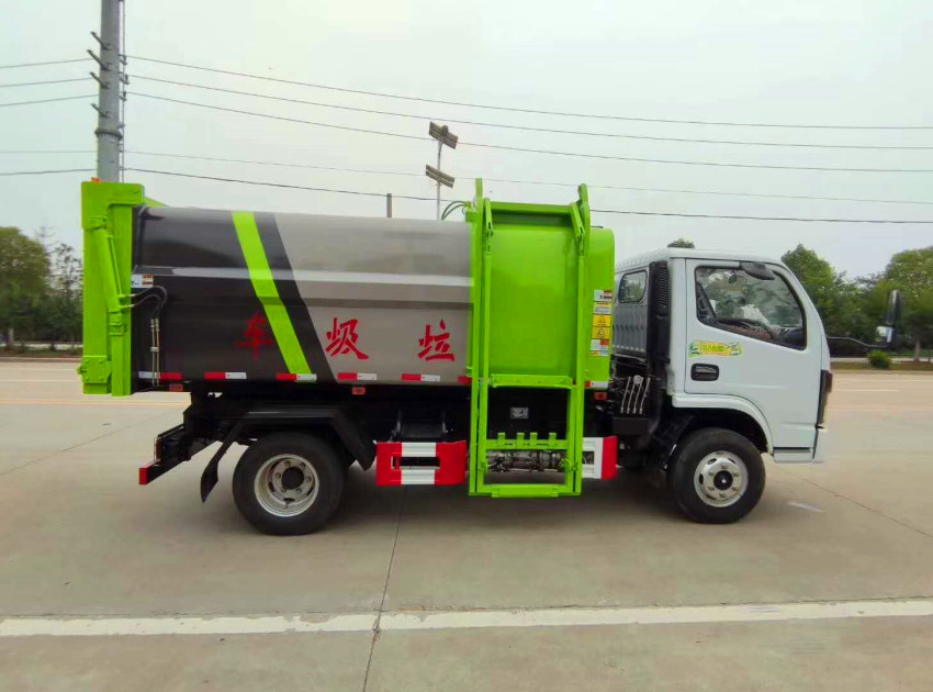 自卸方式為后傾卸。專用裝置:掛桶機構,主要用于城市垃圾集中收集轉運。
