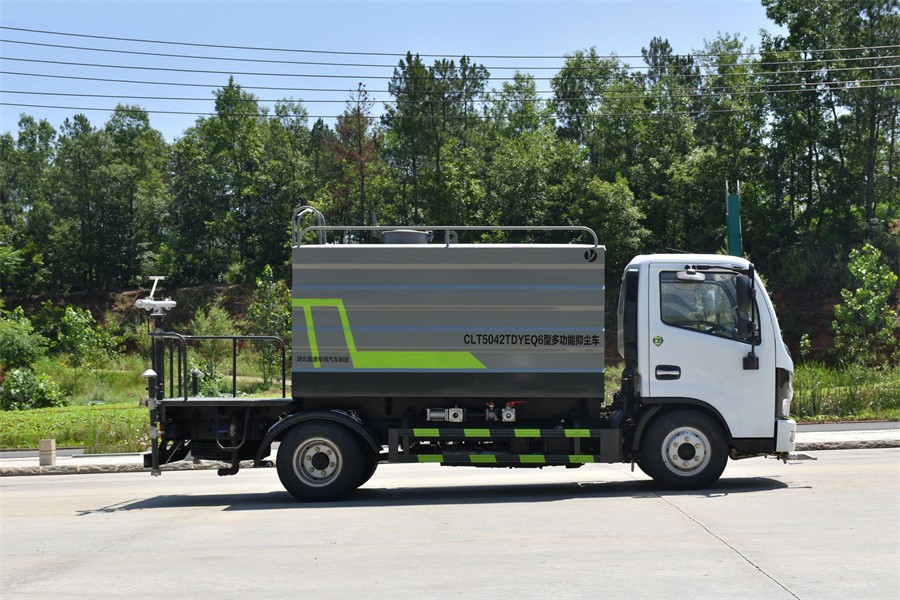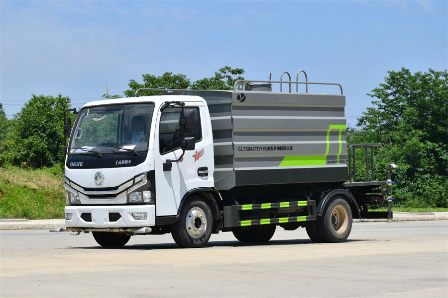 1.產品簡述:縱昂牌 CLT5042TDYEQ6 型多功能抑塵車標配前噴(鴨嘴)、后對 沖、后灑、側噴、后置式工作平臺,平臺上配置綠化水炮(可 360°旋轉,既可 以調成柱狀,也可以調成霧狀),配備優質大功率專用灑水泵(可自吸自排, 可從河里或池塘抽水到罐體),取力器,雜物過濾網,消防接口,自流球閥系統、 取力器、球閥、濾網均為國家標準產品,主管道加粗,法蘭墊、法蘭盤加厚, 大通徑球閥。整體具備性能優良安全可靠、效率高、流量大、維修方便等特點