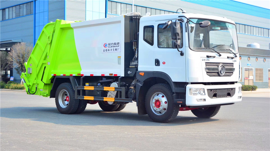 12方壓縮式垃圾車采用東風原裝底盤生產,3950/4500mm軸距,多利卡D9駕駛室,玉柴200馬力發動機(YCS04200-68),法士特C6J75T變速箱,295/80R22.5真空胎,3.9噸前橋,8噸德納后橋,250車架,空調,電動窗,中控鎖,帶ABS,氣剎,排氣制動。可選康機210馬力發動機。
