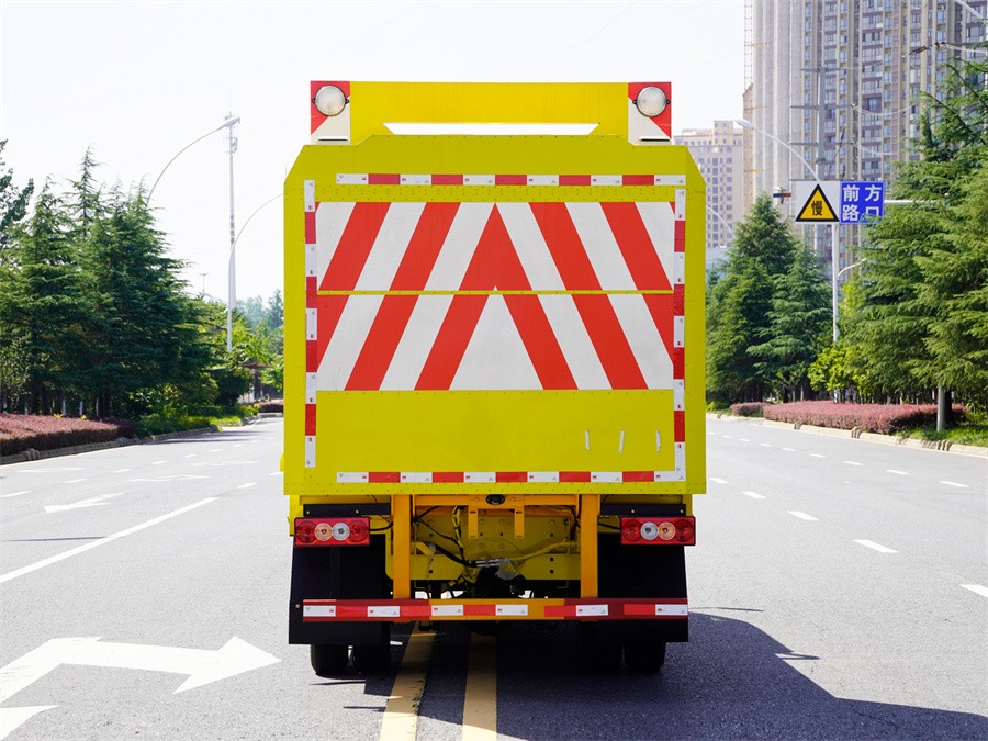 高速公路防撞車該車專用裝置為:車載式緩撞裝置,主要用于移動施工、臨時性封閉車道或交通事故處理及搶險現場,降低城市道路施工、高速公路養護等作業中的安全問題;ABS型號:RL-102;ABS生產企業:廣州瑞立科密汽車電子股份有限公司;隨底盤選裝前格柵風格,選裝前部標識;僅采用底盤3360mm軸距改裝;僅采用185R15LT 6PR輪胎;僅采用DAM16KL發動機;后部作業指示燈僅在車輛駐車作業時開啟。