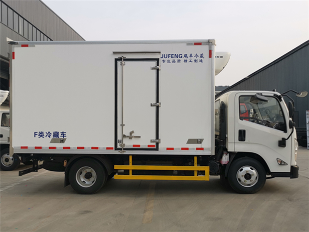 國六寬體江鈴凱運4米2冷藏車廂體配置為:采用斷橋隔熱工藝,整體框架結(jié)構(gòu)制作,廂體內(nèi)、外壁材料為玻璃鋼板,采用高密度保溫層,廂板內(nèi)帶有骨架,廂體厚度80mm,門框,門飾件、包角全部使用不銹鋼材質(zhì)。最新款鋁合金包邊型材,廂體內(nèi)采用LED照明燈及廂體示寬燈;門框密封條為橡膠材質(zhì),后門梁帶加厚防撞塊,加厚型不銹鋼鉸鏈及鎖件。車體副梁采用510L高強度鋼制作,底板為鋁花紋板,車廂后門帶一個上車扶手,其余標配;