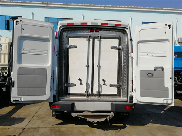依維柯短軸冷藏車(chē)車(chē)廂配置:廂體采用內(nèi)外優(yōu)質(zhì)玻璃鋼板,內(nèi)膽圓弧式廂體,地板為鋁花紋板,底板和四周廂板加裝通風(fēng)槽,不銹鋼門(mén)框,鎖件。