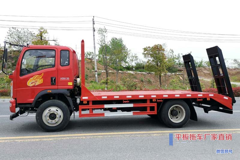 重汽豪曼單橋挖機平板拖車-重汽挖機平板拖車廠家直銷-湖北程力
