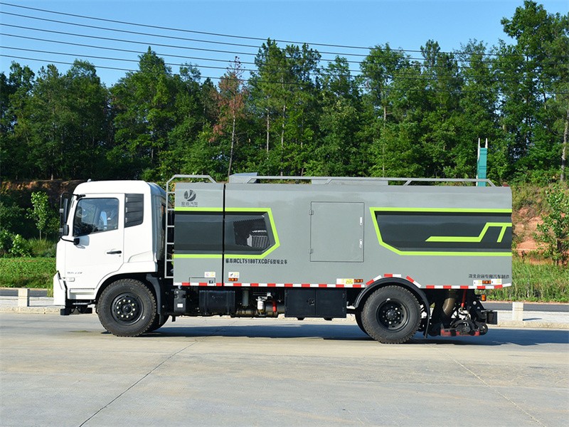 總質量 18000kg 整備質量 10300kg 底 盤 品牌 東風 駕駛室 天錦 型號 B6.2NS6B230 軸距 4700mm 發動機 康機 230 馬力 輪胎 10.00 鋼絲胎 副發動機 康機(140·160·170 馬 力)或者玉柴(140·160 馬力) 水箱容積 3m²上 裝 垃圾箱總容積 13m² 吸塵寬度 2.4m 作業能力 65000-90000m²/h 最大吸入顆粒 100mm 吸凈率 99.3% 作業速度 5-20km/h 垃圾箱卸料角度 45° 選裝 可加裝雪鏟,掃刷等