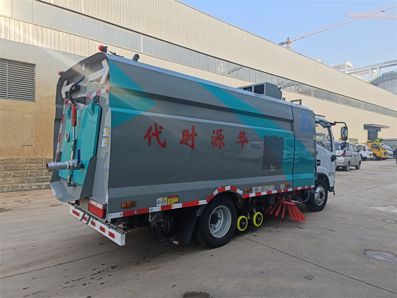 箱體材質為Q235碳鋼,箱體做電泳處理。水箱容積3方,塵箱容積3方。帶2個中置掃 盤,玉柴102馬力副發動機;三洋馬達;高壓水泵(前沖/側噴/中噴/沖洗水槍/垃圾箱 自潔裝置);控制器;控制箱;PLC一鍵控制;尾部LED箭頭燈;垃圾箱、水箱均帶防 溢低水位報警裝置;倒車及洗掃狀態室內監視器。20m高壓沖洗卷盤。車前加裝雪滾,