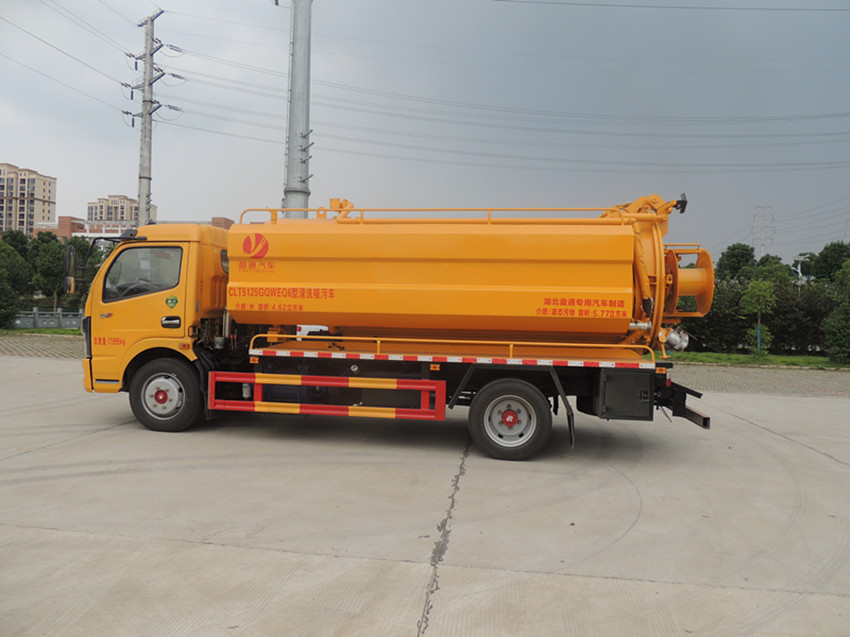 吸污車底盤配置: 采用東風原廠多利卡底盤,白色駕駛室(顏色可選),萬里揚6檔變速箱,軸距3800mm, 245真空胎,原廠abs,帶方向助力,離合助力器,氣剎制動,帶冷暖空調。