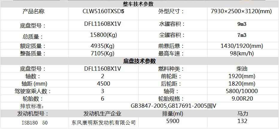 洗掃車底盤配置:采用東風柳汽原裝底盤,5100mm軸距,玉柴180大馬力土豪金定制版,動力更強,M31A四點全浮駕駛室,采用國內首創龍骨架結構,安全性更高,8JS75C變速箱,速比極差小,多工況適應性更好,有效達到動力性和經濟性的完美結合,車輛行駛更省油,9T/4.875后橋,9.00R20鋼絲胎,264(6)大梁,采用亞洲最大的6300噸沖壓機,一次沖壓成型,內外層緊密結合,優于鉚接,250L鋁合金油箱,氣囊減震座椅,ABS采用WABCO牌,提高制動性能可靠性,車載終端,進口配置空調,遙控中控鎖,電動門窗。