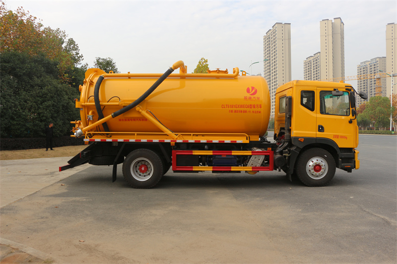 該車用于吸除水坑、下水道里污濁物;主要裝置有罐體及吸污裝置;隨底盤選裝駕駛室,