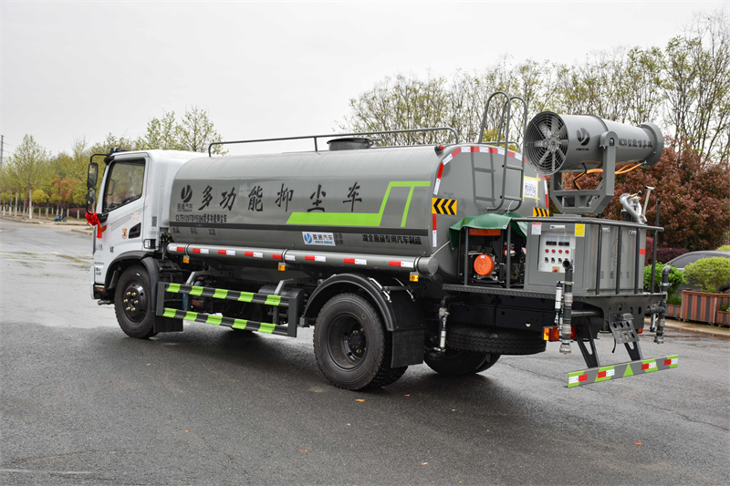 抑塵車具體配置:底盤部分,采用原廠東風底盤,云內150馬力發(fā)動機,3800mm軸距,萬里揚6檔變速箱,8.25R20輪胎,國六排放標準,帶空調,氣囊座椅,多功能方向盤,專用部分,罐體采用優(yōu)質碳鋼材質制作,帶兩個前沖噴頭、兩個后灑噴頭、兩個側噴、后工作平臺、尾部安裝綠化炮,綠化炮可以自行調節(jié)(柱狀,大雨,中雨,小雨,霧狀),帶專用灑水泵可以實現自吸自排,帶消防接口,兩根輸水管,加裝30型柴油霧炮,帶底盤合格證和整車合格證