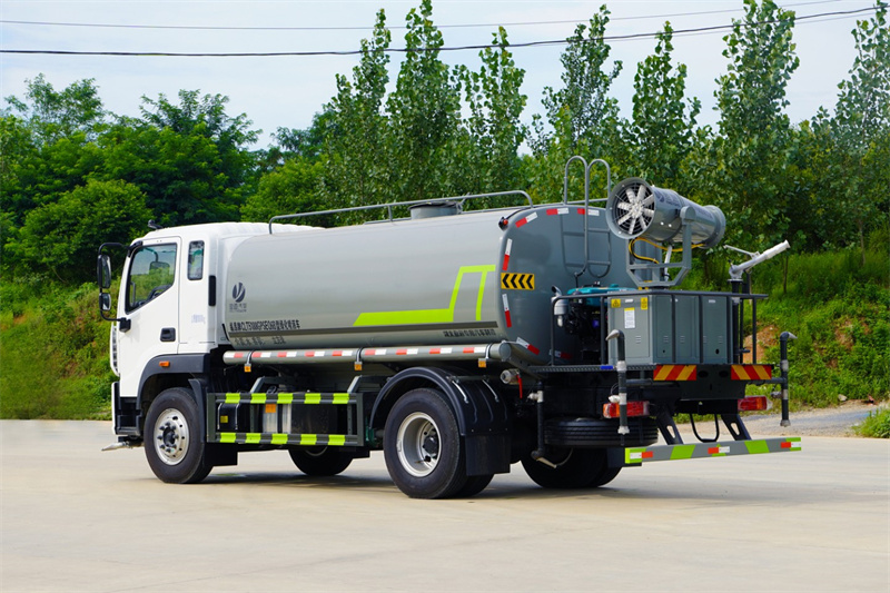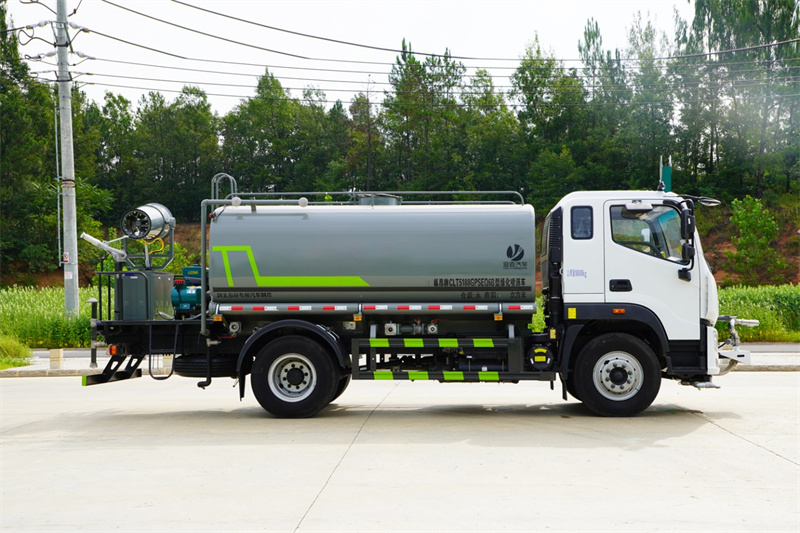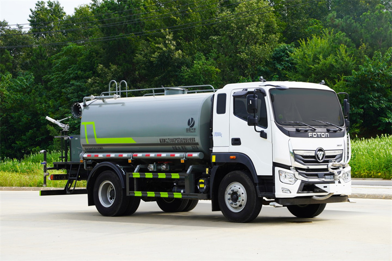 福田奧鈴12-15噸霧炮灑水車產品標配前噴(鴨嘴)、后沖、后灑、側噴、后置式工作 平臺,平臺上配置綠化水炮(可 360°旋轉,既可以調成柱狀,也可 以調成霧狀,更可以調成直沖狀、大雨、中雨、小雨、毛毛雨),配 備優質大功率專用灑水泵(可自吸自排,可從河里或池塘抽水到罐體), 取力器,雜物過濾網,消防接口,自流球閥系統、取力器、球閥、濾網 均為國家標準產品,主管道加粗,法蘭墊、法蘭盤加厚,大通徑球閥。 整體具備性能優良安全可靠、效率高、流量大、維修方便等特點