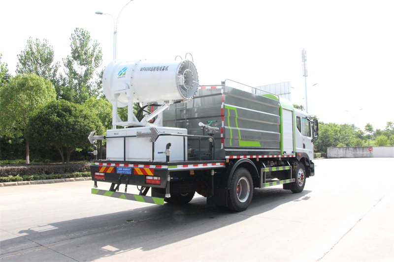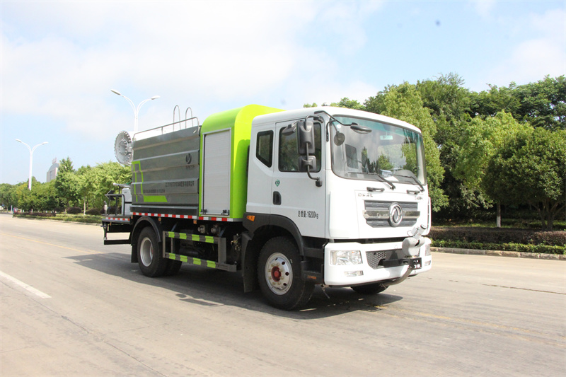 東風(fēng)12方大型霧炮灑水車產(chǎn)品簡述:縱昂牌 CLT5181TDYEQ6A 型多功能抑塵車標(biāo)配前噴(鴨嘴)、后 對(duì)沖、后灑、側(cè)噴、后置式工作平臺(tái),平臺(tái)上配置綠化水炮(可 360°旋轉(zhuǎn),既 可以調(diào)成柱狀,也可以調(diào)成霧狀),配備優(yōu)質(zhì)大功率專用灑水泵(可自吸自排, 可從河里或池塘抽水到罐體),取力器,雜物過濾網(wǎng),消防接口,自流球閥系統(tǒng)、 取力器、球閥、濾網(wǎng)均為國家標(biāo)準(zhǔn)產(chǎn)品,主管道加粗,法蘭墊、法蘭盤加厚, 大通徑球閥。整體具備性能優(yōu)良安全可靠、效率高、流量大、維修方便等特點(diǎn)