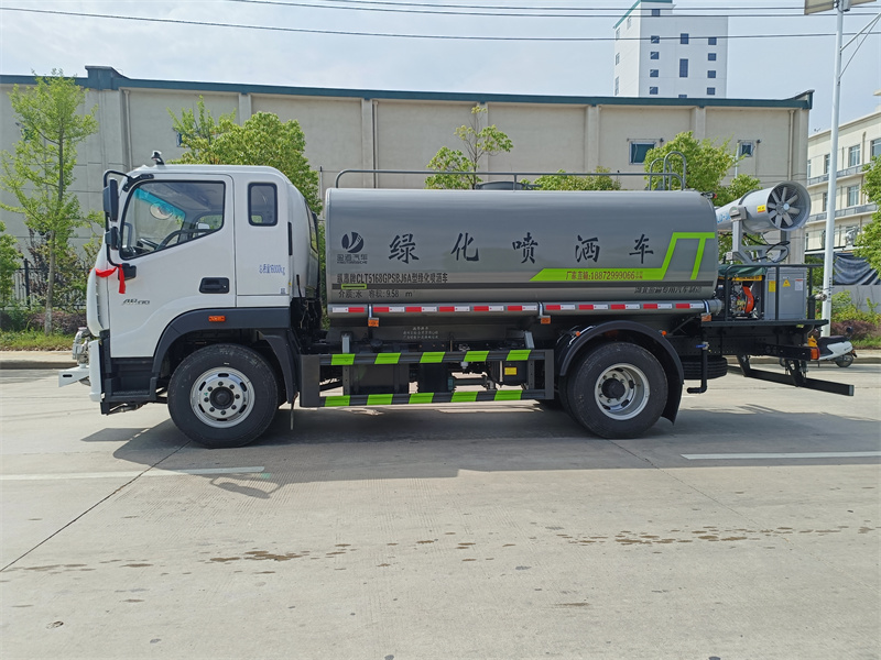 1.產品簡述:縱昂牌 CLT5168GPSBJ6A 型綠化噴灑車標配前噴(鴨嘴)、后對沖、 后灑、側噴、后置式工作平臺,平臺上配置綠化水炮(可 360°旋轉,既可以調 成柱狀,也可以調成霧狀),配備優質大功率專用灑水泵(可自吸自排,可從河 里或池塘抽水到罐體),取力器,雜物過濾網,消防接口,自流球閥系統、取力 器、球閥、濾網均為國家標準產品,主管道加粗,法蘭墊、法蘭盤加厚,大通徑 球閥。整體具備性能優良安全可靠、效率高、流量大、維修方便等特點